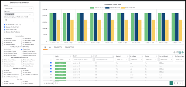 - 통합 가시성 제공: Fabric Composer는 패브릭 전반의 상태를 시각적인 단일 대시보드로 통합하여 제공합니다. 관리자는 개별 장비에 접속할 필요 없이 전체 네트워크의 상태, 트래픽 흐름, 오류 지점을 한눈에 파악할 수 있습니다.